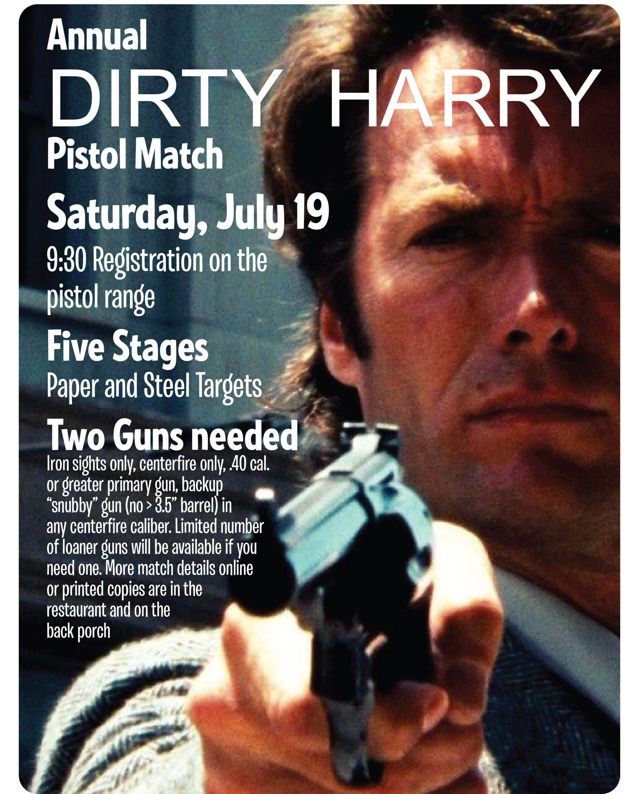 - You will need an iron sighted revolver or semi-auto: .4o cal.